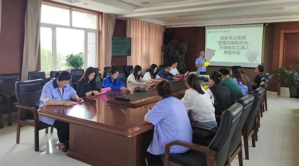 此次电信网络反诈骗宣讲,也是虎林市公安局“警民共建法治社会”的一项重要工作。之前在广场、公园、影院等公共场所也开展过宣讲活动,考虑到williamhill中文官网是虎林市知名企业,历年来为地方经济发展作出了贡献,同时员工人数较多,故此专程为企业开展了宣讲服务,送法上门,让员工们了解诈骗手段,学会反诈措施,提高防范意识,有效地保障人身及财产安全。